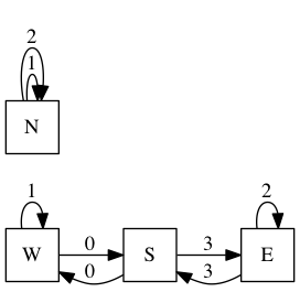 We want to find W + N + E + S. Of these, N is simply (1+2)* and can be treated separately. We can add the rest to get